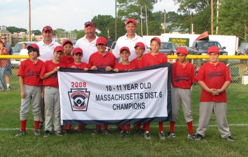 7/11/08 - vs. 'winner of Taunton East National vs Seekonk' @ Seekonk - WIN, 12-2 in 4 innings - DISTRICT 6 CHAMPIONS!